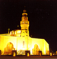 The portal conceals the inside of the building from the rest of the world and provides a threshold to what may be a very busy atmosphere outside the mosque. It preserves the tranquillity inside and so can be also be of great psychological importance to some worshippers. The area is often highly decorated, helping to make it one of the most prominent and imposing features of the mosque. A pool with or without a fountain is used for ablutions before prayer, or alternatively just for decoration. If it does have a practical use, it is usually built in the centre of the courtyard to allow the maximum number of people to wash at the same time. The area for the congregation at prayer is often partly covered by a roof and partly open to the sky. It is usually square or rectangular and may be covered by a single large dome or one or more smaller domes. The direction of prayer is indicated by the qibla wall which faces Mecca. At the mid-point of the qibla is a niche known as the mihrab. It indicates the point at which the Prophet stood when at prayer in Medina. The mihrab is the focal point of the building and is often elaborately decorated. The minbar or pulpit is to the right of the mihrab and consists of a staircase leading to small platform. It is from here that the khutba or weekly oration is delivered at Friday prayers and the idea originates from the small set of steps used by the Prophet to ensure all his followers could hear him. It's use is now essential for the imam during Friday prayers, although he speaks from the step below the platform - the highest level is reserved for the Prophet. Another platform, the dikka is reached by another set of steps and is used for the worshippers in the mosque to repeat the ritual postures of the imam and speak the responses. Nearby, stands the kursi or lectern which holds the Holy Koran. The maqsura began life in the early mosques as a raised area surrounded by wooden screens. Part of its purpose was to provide an area to safeguard the life of the imam, who was often also the local governor and therefore a target. |